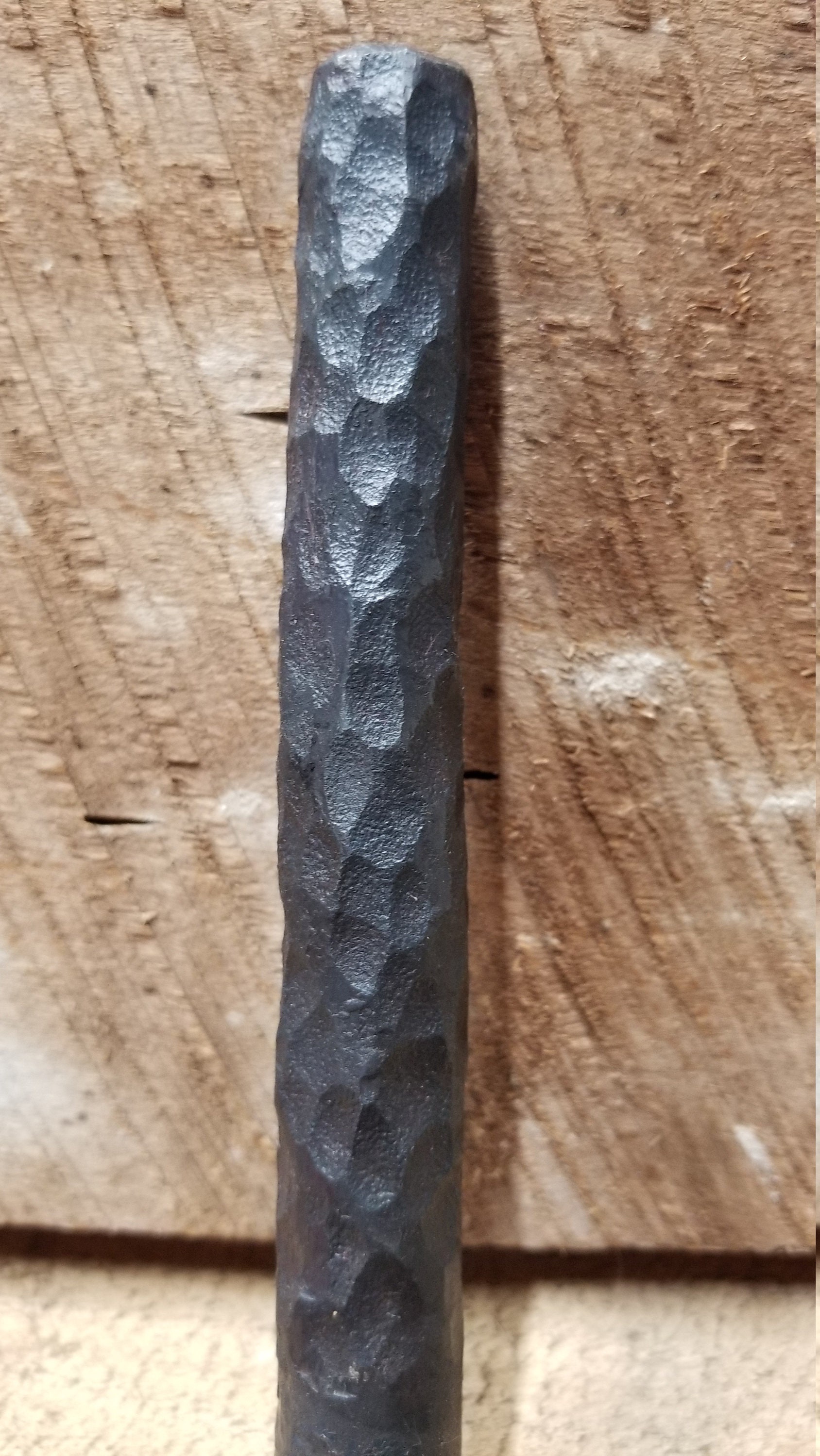 Hand forged blacksmith made beer tap handles. Each beer tap handle is made in my shop by Seth Haviland. Each forged tap handle is hot waxed for a dark traditional blacksmith finish. The metal beer tap handles are made from 3/4" round bar, square bar or flat bar and are approximately 6.5" long. Each metal beer tap handle is drilled and tapped internally on the bottom to accept standard 3/8" 16nc beer tap handle threads. Simply just screw these tap handles directly onto your beer taps! Add a custom touch to your mancave, home bar, or garage bar with a hand forged metal tap handle!