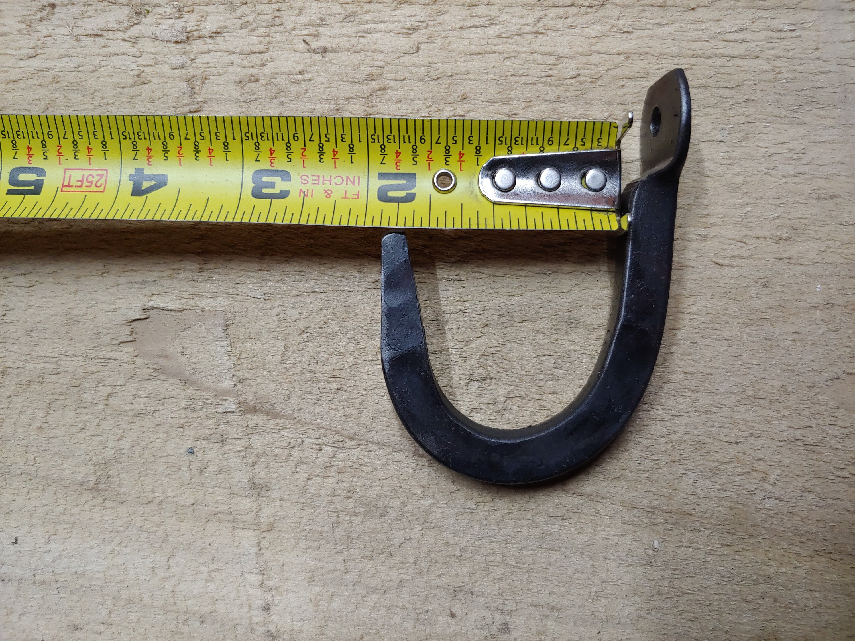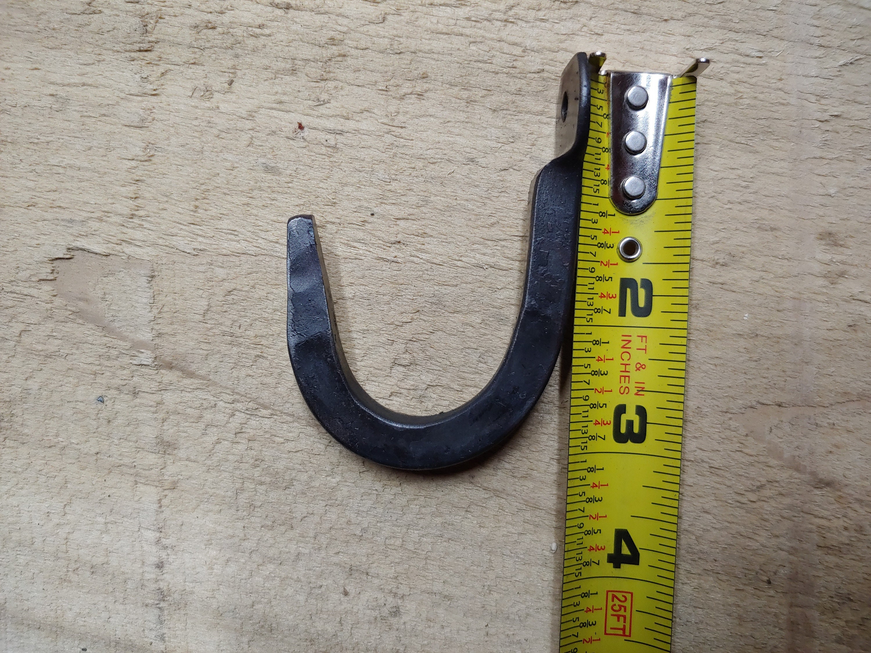 J hooks are 3" long, 2 1/4" wide and a depth of 1 5/8". All J hooks are hand forged so there may be some slight variances even though we strive to make every hook as close to these dimensions as possible.