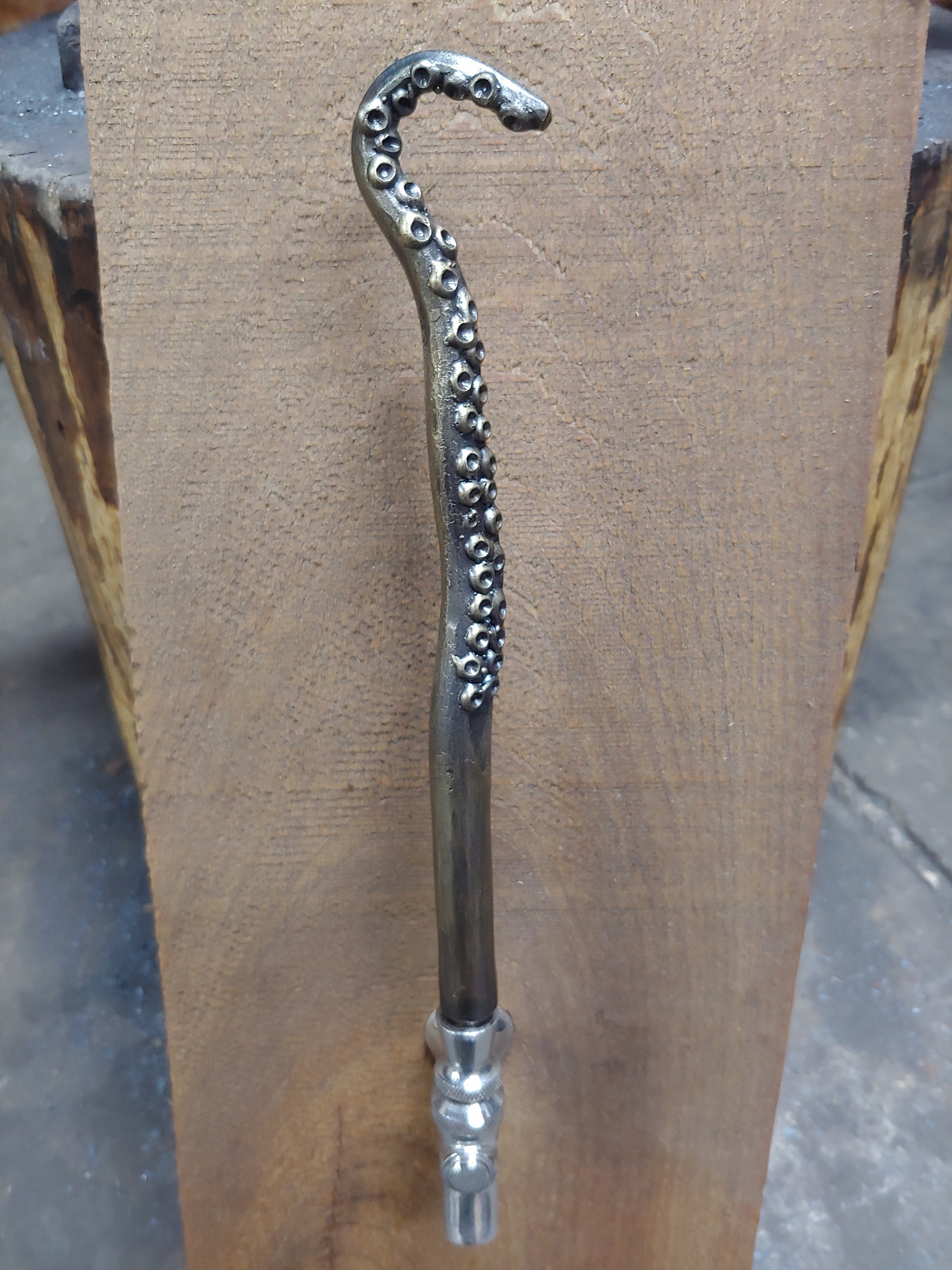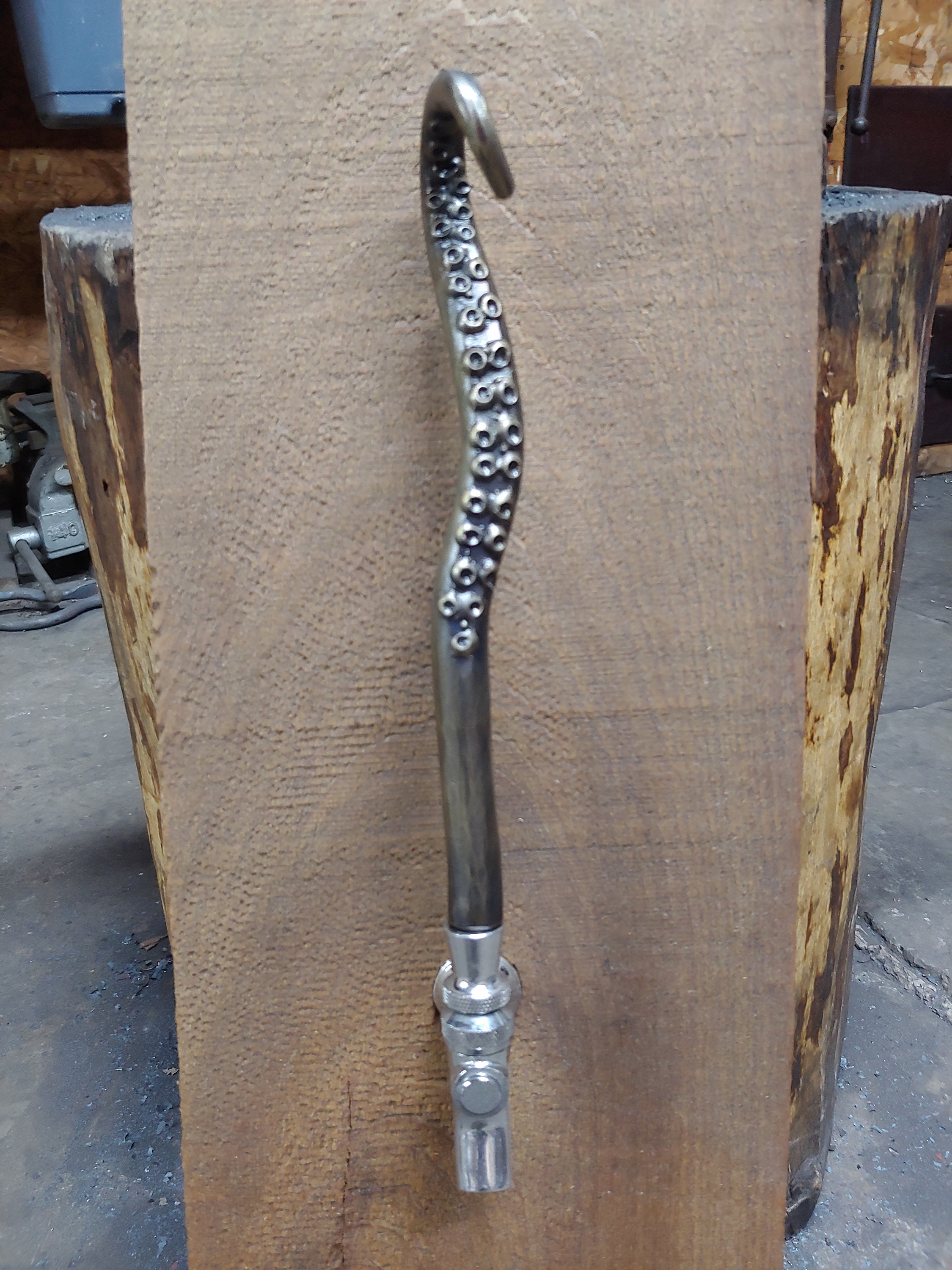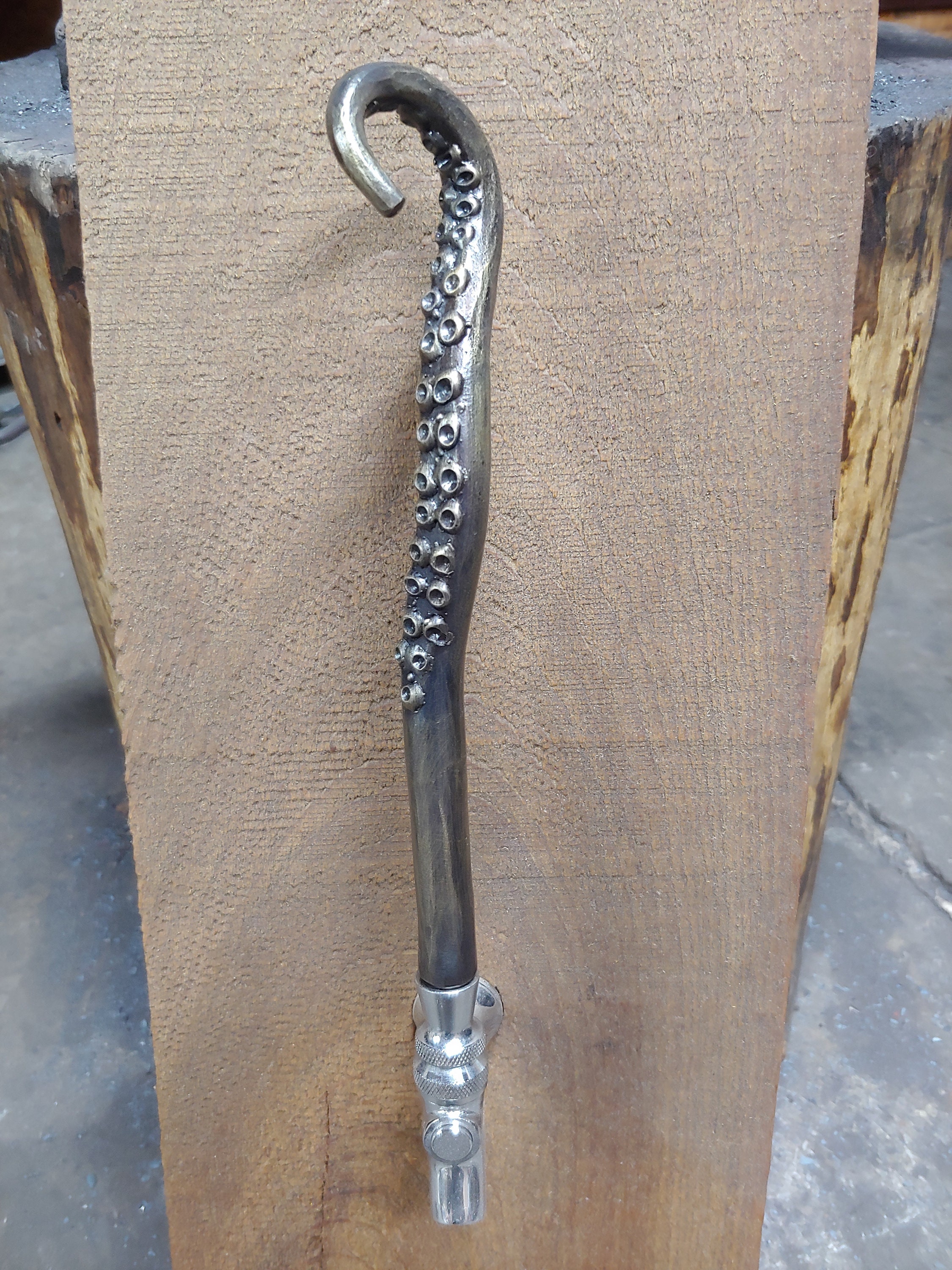 This new style for us is our Octopus tentacle beer tap handle. This beer tap handle is hand forged by blacksmith Seth Haviland. The Octopus beer tap handle is amazingly realistic in its appearance and flow.