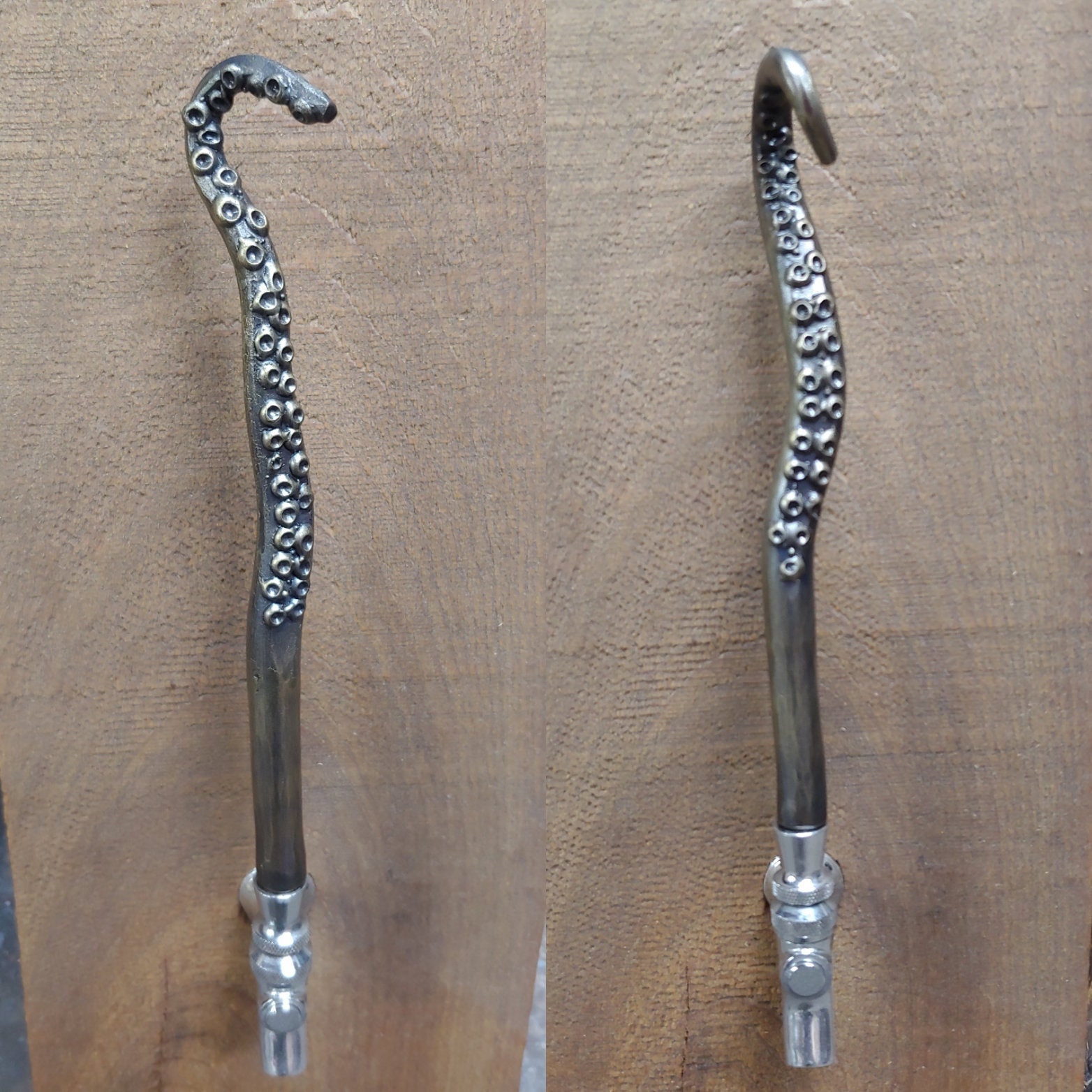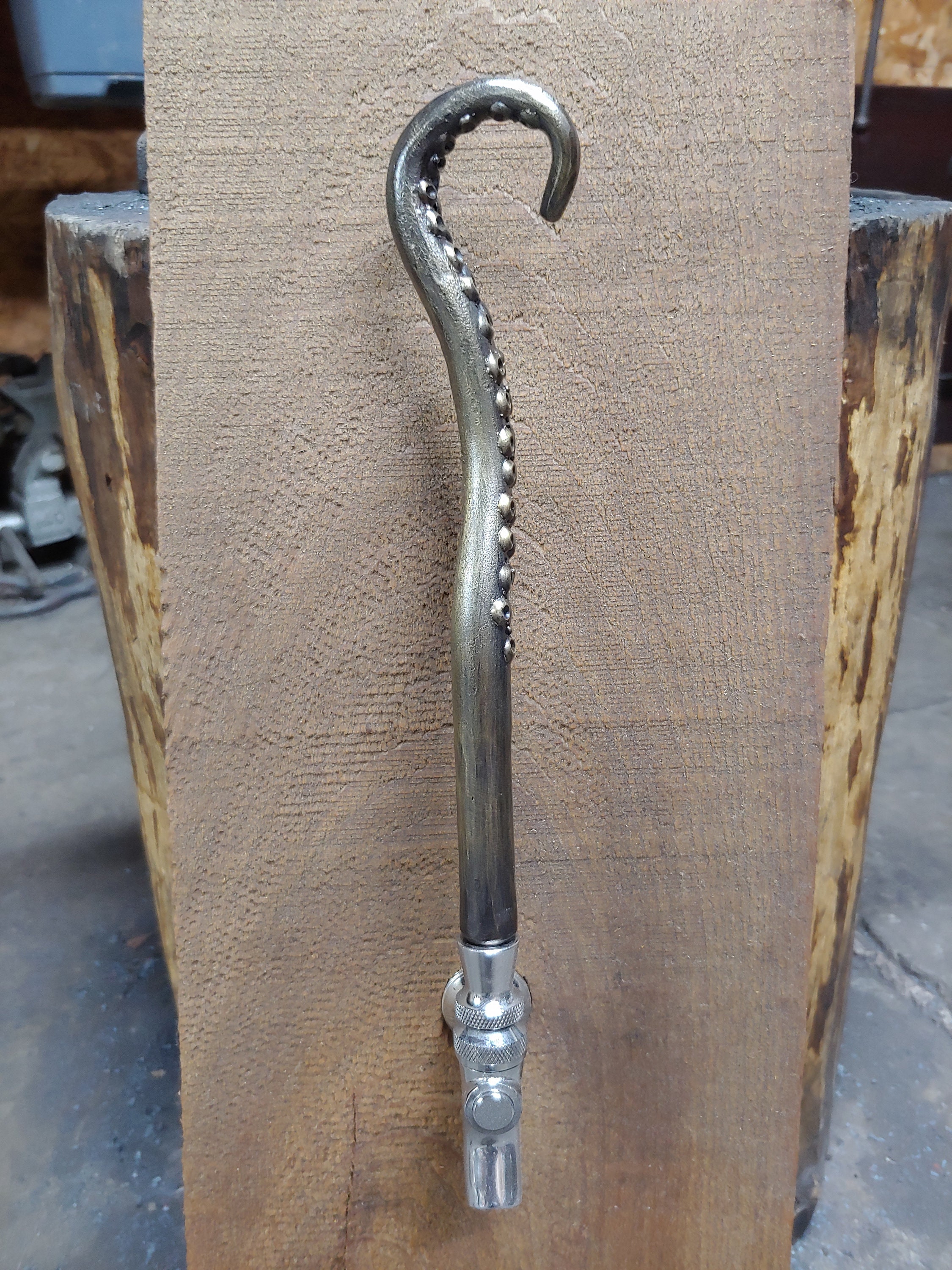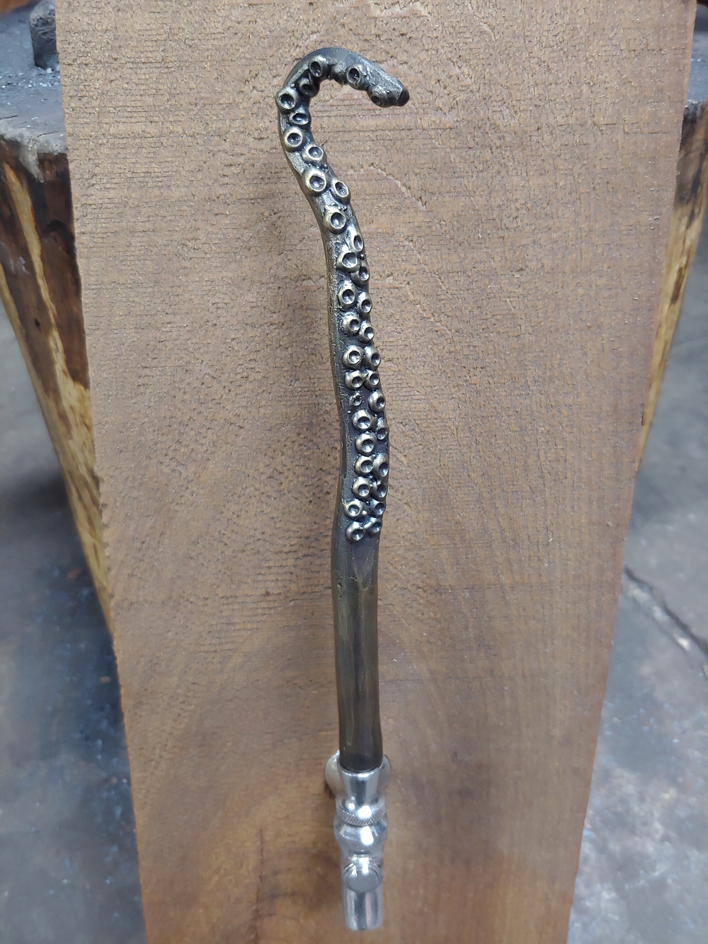 This new style for us is our Octopus tentacle beer tap handle. This beer tap handle is hand forged by blacksmith Seth Haviland. The Octopus beer tap handle is amazingly realistic in its appearance and flow.